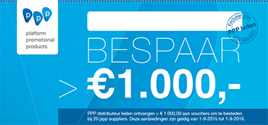 De PPP Voucheractie start op 1 september 2015. Dat is vlak voor De Leveranciersdagen op 2 en 3 september 2015 in de Jaarbeurs te Utrecht. PPP leden kunnen daar direct hun cheques verzilveren en hun ledenvoordeel, dat kan oplopen tot wel € 1.000,00, incasseren. De actie heeft een looptijd van een jaar tot 1 september 2016 en is exclusief voor leden van het Platform Promotional Products. Wij verwachten veel van deze voucheractie en zijn er trots op dat er maar liefst 20 PPP leveranciersleden (zie onder) aan meedoen!