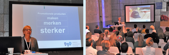 Tijdens het ‘Print & Inspire’ event van Drukwerkdeal in DeFabrique in Utrecht hielden onze directeur Marijke van Hoorne en voorzitter Joop van Veelen presentaties getiteld: ‘Promotionele producten maken merken sterker’. Voor deze dag waren de wederverkopers van Drukwerkdeal uitgenodigd. De belangstelling was groot, er waren 1.400 aanmeldingen. Ook de presentaties van Marijke en Joop mochten rekenen op een gezonde interesse. Het was een mooie kans om deze veelal creatieve ondernemers te overtuigen van de kracht van het promotionele product en dit mee te nemen in de gesprekken met hun klanten.