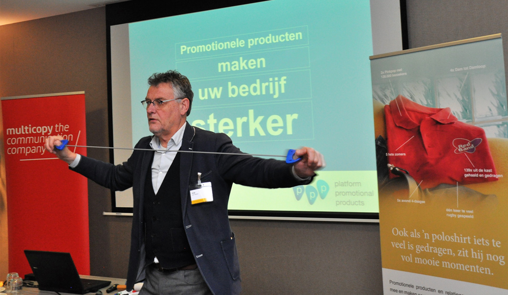 Joop van Veelen demonstreert dat promotionele producten merken sterker maken