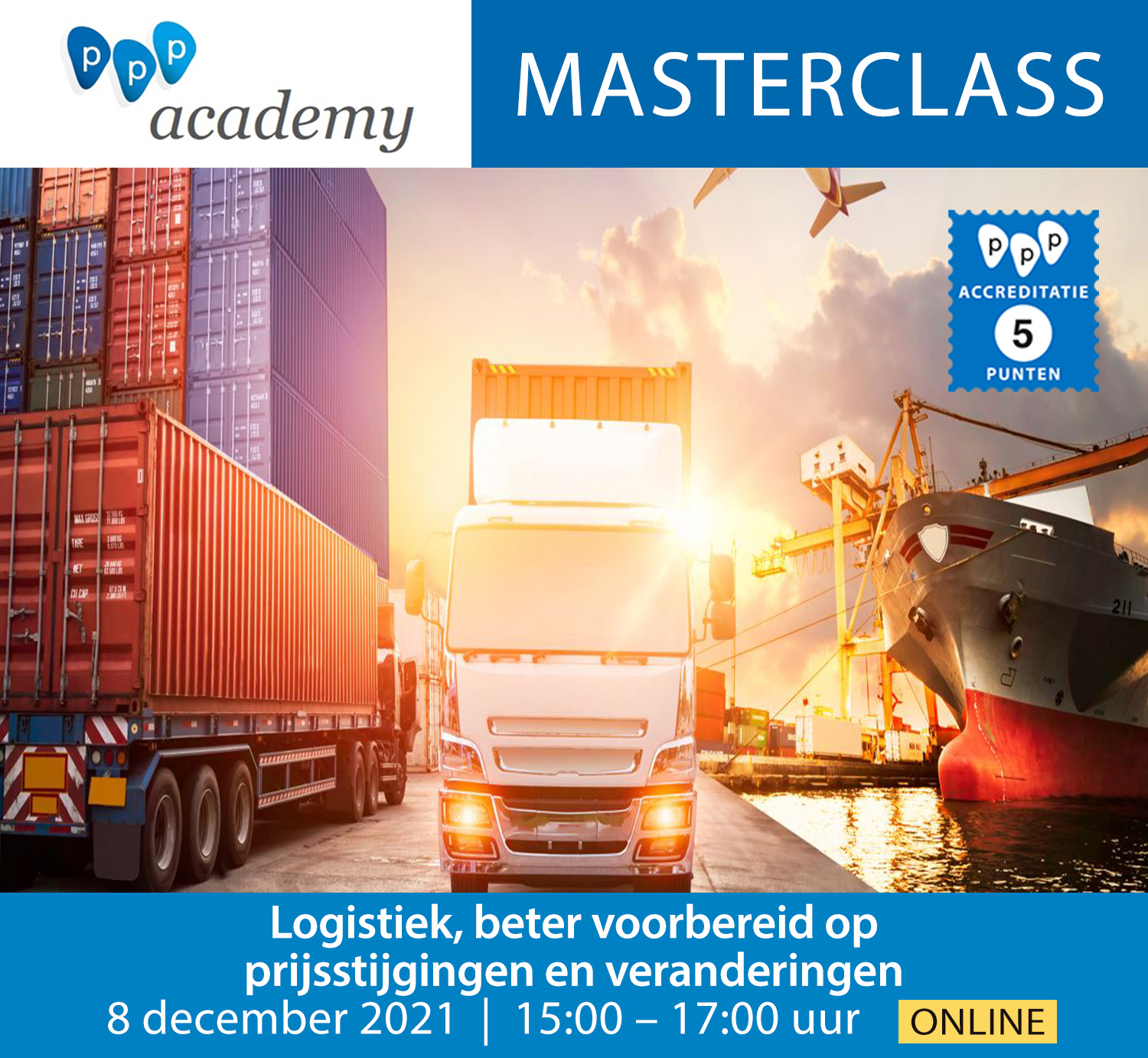 De PPP Masterclass ‘Logistiek’ speelt in op de actuele situatie waarbij de internationale handel is geconfronteerd met forse prijsstijgingen. Brandende vragen zijn: Hoe reduceren we de risico’s in de keten? Hoe bouwen we meer flexibiliteit in de supply chain op? Hoe maken we slim gebruik van digitalisering? De antwoorden op die vragen en tal van andere issues worden in deze Masterclass behandeld.